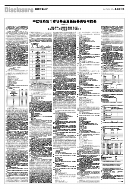 中欧骏泰货币市场基金更新招募说明书摘要