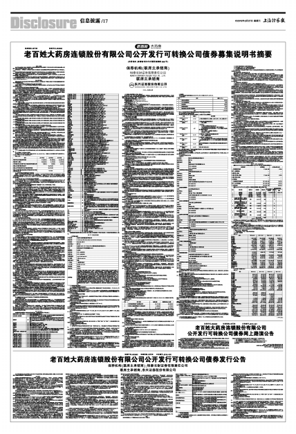 经中国证券监督管理委员会证监许可[2018]2189号文核准,老百姓大药房连锁股份有限公司(以下简称“老百姓”或“发行人”)公开发行32,700.00万元可转换公司债券。本次发行的可转换公司债券将向发行人原股东优先配售,优先配售后余额部分(含原股东放弃优先配售部分)通过上海证券交易所交易系统网上向社会公众投资者发售的方式进行。本次发行的可转换公司债券募集说明书摘要和发行公告已刊登于2019年3月27日的《中国证券报》、《上海证券报》、《证券时报》和《证券日报》,募集说明书全文及相关资料可在上海证券交易所网站(http://www.sse.com.cn)查询。