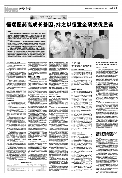 “看好我们的投资者,不仅有境内的,还有许多境外的,通过沪港通买入的股份数量已占到公司总股本的13%。”恒瑞医药负责人日前接受上证报记者调研时如此说。该公司的成长史,堪称A股价值投资之经典。