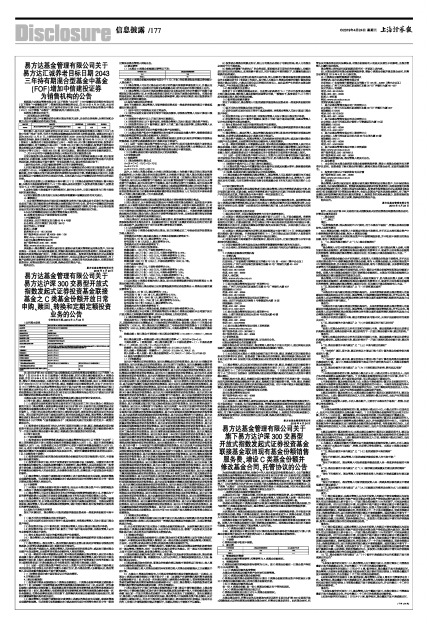 根据易方达基金管理有限公司(以下简称“本公司”)与中信建投证券股份有限公司(以下简称“中信建投证券”)签署的基金销售服务协议,自2019年4月24日起,本公司将增加中信建投证券为易方达汇诚养老目标日期2043三年持有期混合型基金中基金(FOF)(以下简称“本基金”)销售机构并开通相关业务。