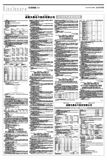 报告全文详见公司在巨潮资讯网(http://www.cninfo.com.cn)披露的《成都天奥电子股份有限公司2018年年度报告》。报告摘要详见公司在《证券时报》、《中国证券报》、《上海证券报》、《证券日报》及巨潮资讯网(http://www.cninfo.com.cn)披露的《成都天奥电子股份有限公司2018年年度报告摘要》。