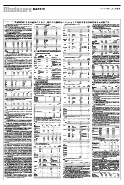 安徽应流机电股份有限公司关于上海证券交易所对公司2018年年度报告事后审核问询函的回复公告