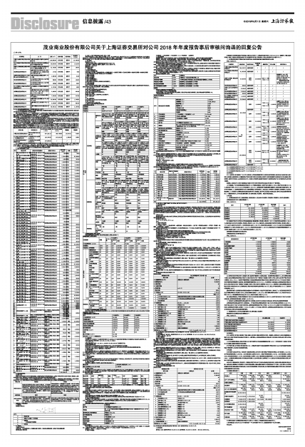 茂业商业股份有限公司关于上海证券交易所对公司2018年年度报告事后审核问询函的回复公告