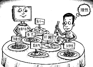 在消费新业态下,“一年一度”的购物节已变成“一月一节”。这不,“五一”采购热潮刚过,“618”购物节又来了。在新零售进入存量竞争阶段,购物节也由拼销量、打价格战转为拼服务、拼体验。而消费者则变得更为理性,“质量好”“性价比高”“服务好”成为热门搜索的关键词。漫画 刘道伟