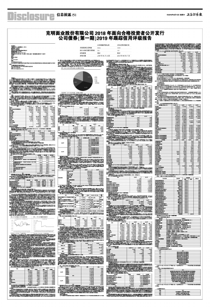 中证鹏元资信评估股份有限公司(以下简称“中证鹏元”)对克明面业股份有限公司(以下简称“克明面业”或“公司”,股票代码:002661.SZ)及其2018年10月18日发行的公司债券 (以下简称“本期债券”)的2019年度跟踪评级结果为:本期债券信用等级维持为AAA,发行主体长期信用等级维持为AA,评级展望维持为稳定。该评级结果是考虑到公司具备较强的市场竞争力,营业收入进一步增长,毛利率有所提升,深圳市高新投集团有限公司(以下简称“高新投集团”)提供的保证担保能提升本期债券的信用水平;同时中证鹏元也关注到公司 第一大股东股权质押比率高,面临一定产能消化风险,以及面临一定资金压力和偿债压力等风险因素。