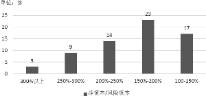 从净资本/风险资本看,67家信托公司加权平均为185.46%,较2017年有所提升。总体来看,净资本/风险资本比值高的公司净资本相对较小,排名前10的公司净资本均不足100亿元,但是净资本超过100亿元的15家公司中,净资本/风险资本最高的为259.08%,最低的为128.77%,这主要与信托公司的业务结构和业务模式有关。