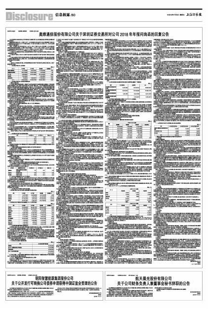 奥维通信股份有限公司关于深圳证券交易所对公司2018年年报问询函的回复公告