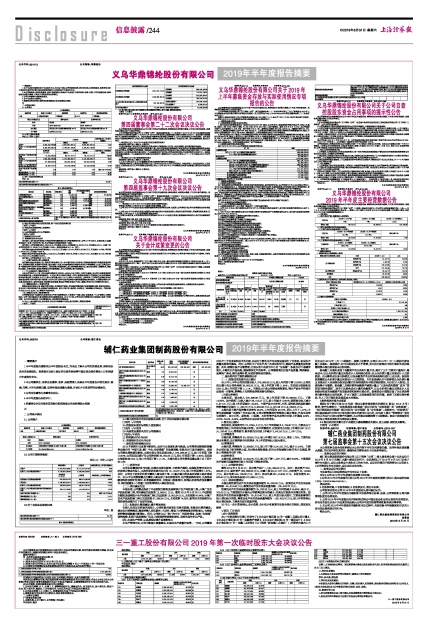 (该议案内容详见上海证券交易所网站http://www.sse.com.cn及同日刊登在《上海证券报》、《中国证券报》、《证券日报》、《证券时报》的《义乌华鼎锦纶股份有限公司关于公司2019年上半年募集资金存放与实际使用情况的专项报告的公告》)