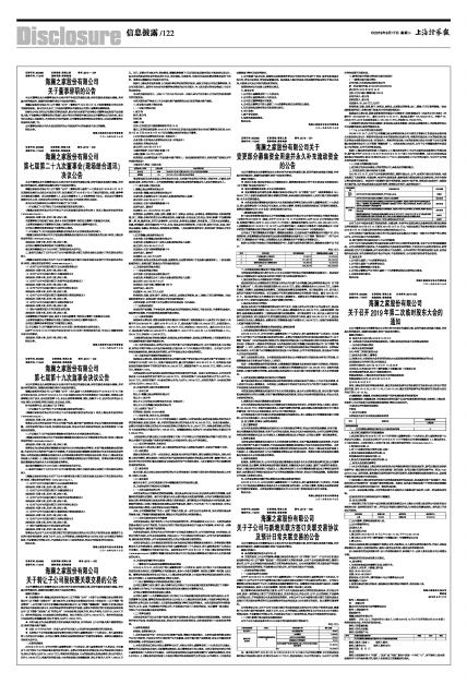 上述议案已经公司2019年9月15日召开的第七届董事会第二十九次会议、第七届监事会第十九次会议审议通过。会议决议公告已于2019年9月17日刊登在本公司指定披露媒体《上海证券报》、《中国证券报》、《证券时报》、《证券日报》及上海证券交易所网站(www.sse.com.cn)。