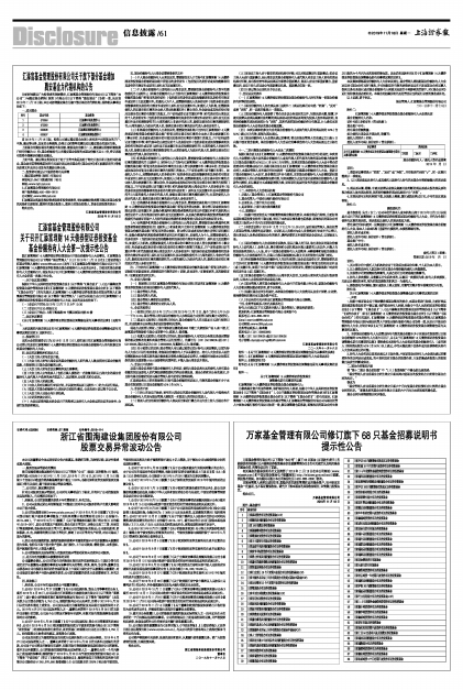 万家基金管理有限公司(以下简称“本公司”)旗下68只基金(详见附件清单)的招募说明书根据《公开募集证券投资基金信息披露管理办法》的有关规定以及相应基金的基金合同、托管协议进行了更新。