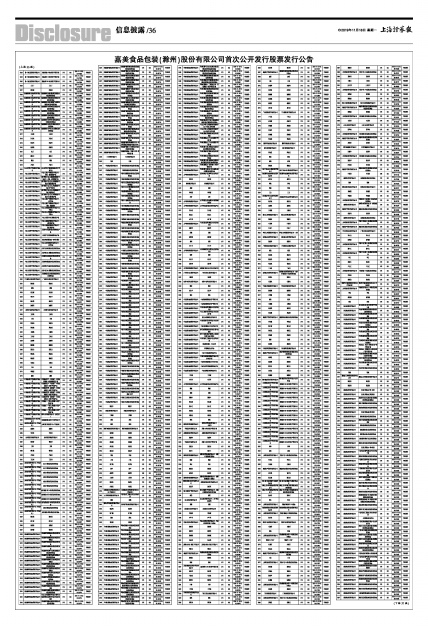 嘉美食品包装(滁州)股份有限公司首次公开发行股票发行公告