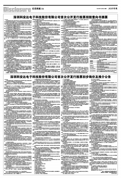 深圳科安达电子科技股份有限公司首次公开发行股票招股意向书摘要