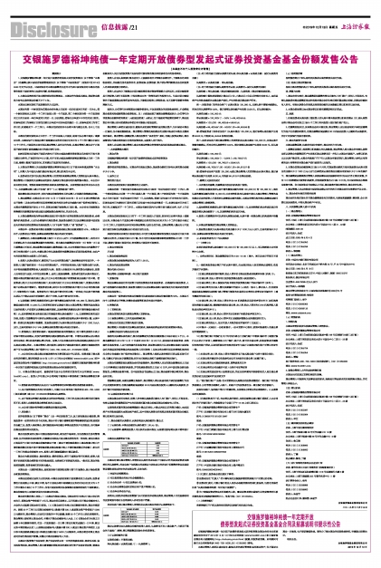 交银施罗德裕坤纯债一年定期开放债券型发起式证券投资基金基金合同全文和招募说明书全文于2019年12月13日在本公司网站(www.fund001.com)和中国证监会基金电子披露网站(http://eid.csrc.gov.cn/fund)披露,供投资者查阅。如有疑问可拨打本公司客服电话(400-700-5000,021-61055000)咨询。