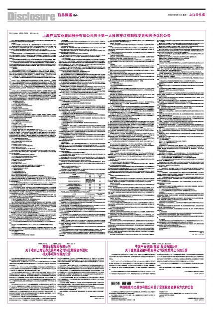 2、《上海界龙集团有限公司与丽水浙发易连商务管理合伙企业(有限合伙)关于上海界龙实业集团股份有限公司控制权变更相关安排之执行协议》;
