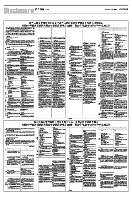 根据《公开募集证券投资基金信息披露管理办法》及基金合同和托管协议的有关规定,经与基金托管人协商一致,易方达基金管理有限公司决定对易方达新收益灵活配置混合型证券投资基金(以下简称本基金)的基金合同、托管协议进行修订。现将相关事宜公告如下: