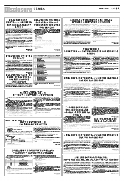 关于调整旗下基金2020年春节假期申购赎回等交易业务及清算交收安排的提示性公告 -