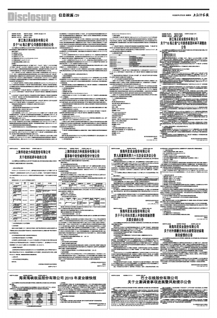 海南海峡航运股份有限公司2019年度业绩快报
