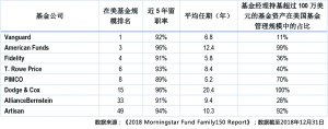 以低费率被动策略著称的Vanguard是目前美国最大的基金公司,但其无论在基金经理留职率、平均任期还是基金经理持基方面都处于业内中下的位置。从业绩考核和激励机制来看,Vanguard旗下基金经理的薪酬通常包括三个部分:基础薪资,年终奖及长期薪酬激励计划。通常而言,基金经理的底薪由其经验以及在岗的表现而定,而基金经理的年终奖主要视管理基金过去一年相较于所跟踪指数的相对表现而定。Vanguard的长期薪酬激励计划面向所有的员工,公司每年会根据旗下所有基金较同类基金的总体表现,基金管理总规模以及公司整体的运营情况决定当年的长期薪酬激励计划,并根据员工的入职年限、职位以及职责确定每个员工的奖金比例。总的来说,虽然Vanguard的薪酬激励机制较为完善,但业绩考核期较为短期化。不过Vanguard旗下主要以被动策略为主,对于基金经理个人能力的依赖性相对较低,基金经理流动对于Vanguard基金业绩的影响并不会像对于一些偏主动管理的基金公司那么大。