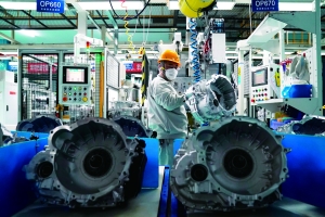 ■ 在哈尔滨东安汽车发动机制造有限公司的生产线上,工人在进行生产作业(2月29日摄)。