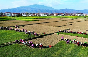 3月3日,周家山镇春风村村民在田间栽种中草药麦冬(无人机照片)。 连日来,汉江之畔的陕西省汉中市勉县周家山镇春风村村民忙碌在栽植中草药麦冬的田野上。2018年以来,该村引进优质中草药麦冬进行试种并取得成功,为此专门成立中药材种植加工专业合作社,延长产业链条。 新华社 图