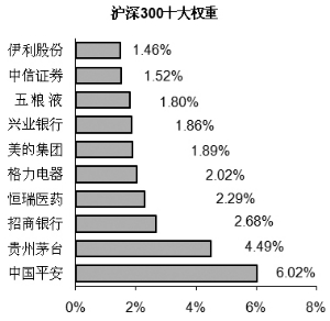 | 五 粮 液 | 115.20 | -4.48% | 1.80% | 五 粮 液 | 115.20 | -4.48% | 1.35% | 中国人寿 | 26.34 | -10.56% | 1.72% | 长江电力 | 17.29 | 1.53% | 1.86% | 常熟银行 | 6.84 | -13.85% | 0.85% |