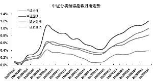 | 中证金融债 | 199.61 | 201.6 | 1.99 | 1.00% | 4.28 | 4.16 | 15.28 | 2.727 |