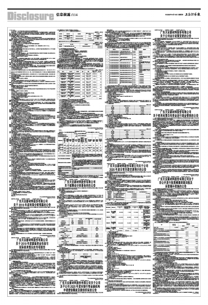 ● 广东天安新材料股份有限公司(以下简称“公司”)拟以公司2019年度利润分配方案实施时股权登记日的总股本205,352,000股为基数,向全体股东每10股派发现金红利人民币1.0元(含税)。