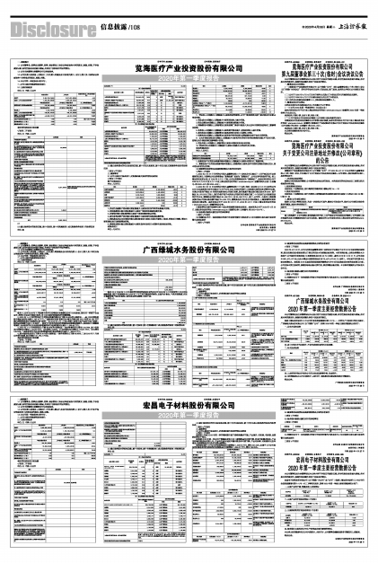 根据上海证券交易所《上市公司行业信息披露指引第十七号一一水的生产与供应》的有关要求,广西绿城水务股份有限公司(以下简称“公司”)现将2020年第一季度主要经营数据公告如下: