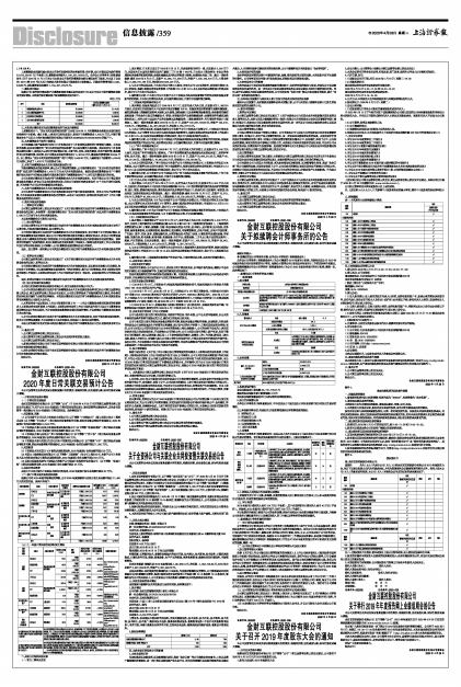 根据金财互联控股股份有限公司(以下简称“公司”)第五届董事会第三次会议提议,公司拟定于2020年5月19日召开2019年度股东大会。