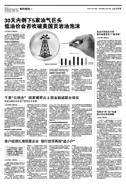 除了上述公司,美国境内的其他石油公司如切萨皮克能源(Chesapeake Energy)、丹伯里资源公司和卡隆石油公司等也聘请了债务顾问。页岩油气企业正处在这场石油巨震的“震中”。