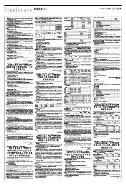 上海至正道化高分子材料股份有限公司(以下简称“公司”)根据上海证券交易所《上市公司行业信息披露指引第十八号一一化工》要求,现将2020年第一季度主要经营数据披露如下: