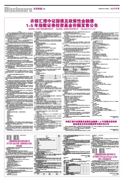 农银汇理中证国债及政策性金融债1-5年指数证券投资基金基金合同全文和招募说明书全文于2020年5月12日在本公司网站[www.abc-ca.com]和中国证监会基金电子披露网站(http://eid.csrc.gov.cn/fund)披露,供投资者查阅。如有疑问可拨打本公司客服电话(4006895599、021-61095599)咨询。