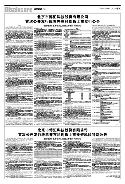 (3)提请投资者关注本次发行价格与网下投资者报价之间存在的差异,网下投资者报价情况详见同日刊登在上交所网站(www.sse.com.cn)的《北京市博汇科技股份有限公司首次公开发行股票并在科创板上市发行公告》(以下简称“《发行公告》”)。