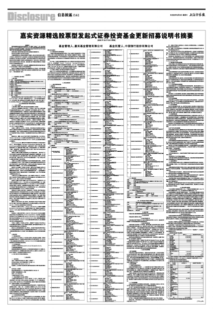 嘉实资源精选股票型发起式证券投资基金更新招募说明书摘要
