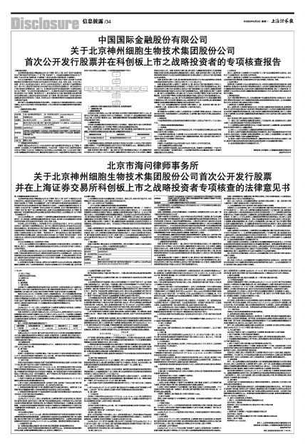 北京神州细胞生物技术集团股份公司(以下简称“发行人”或“公司”)申请首次公开发行股票并在上海证券交易所科创板上市(以下简称“本次发行”),本次发行采用向战略投资者定向配售(以下简称“本次战略配售”)、网下向符合条件的投资者询价配售和网上向符合条件的社会公众投资者定价发行相结合的方式进行。中国国际金融股份有限公司(以下简称“中金公司”或“主承销商”)作为本次发行的主承销商,北京市海问律师事务所(以下简称“本所”或“我们”)受主承销商的委托,就参与本次战略配售的投资者(以下简称“战略投资者”)的配售资格是否符合法律法规的要求等相关事宜出具法律意见书(以下简称“本法律意见书”)。