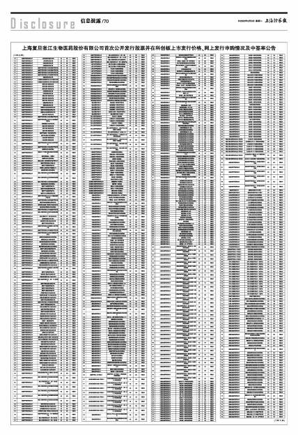 上海复旦张江生物医药股份有限公司首次公开发行股票并在科创板上市发行价格、网上发行申购情况及中签率公告