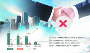 年初至今高达25%的被否率,远超过去3年的平均水平。数据显示,2019年并购重组委共审核124单,否决21单,被否率为16.94%;2018年并购重组委共审核135单,否决17单,被否率为12.59%;2017年对应的数字分别为176单、12单,被否率为6.81%。