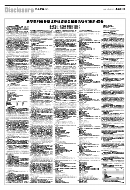 新华鼎利债券型证券投资基金招募说明书(更新)摘要