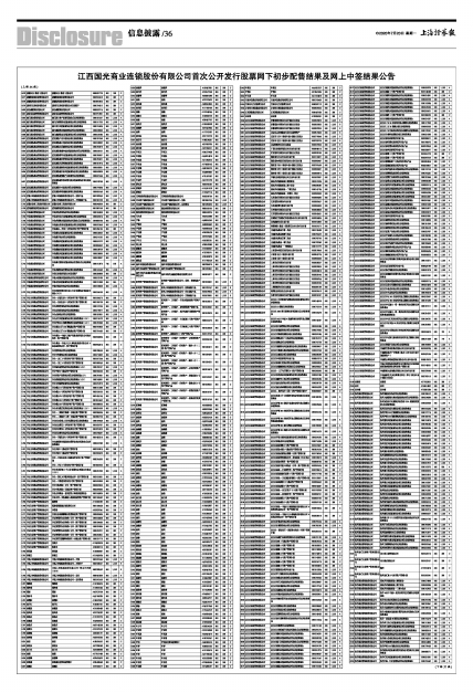 江西国光商业连锁股份有限公司首次公开发行股票网下初步配售结果及网上中签结果公告