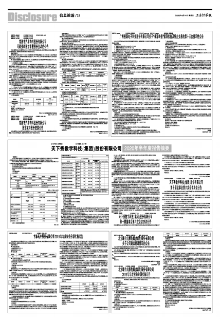 具体内容请详见本公司于同日在上海证券交易所网站(www.sse.com.cn)披露的《天下秀数字科技(集团)股份有限公司2020年半年度报告》、《天下秀数字科技(集团)股份有限公司2020年半年度报告摘要》。