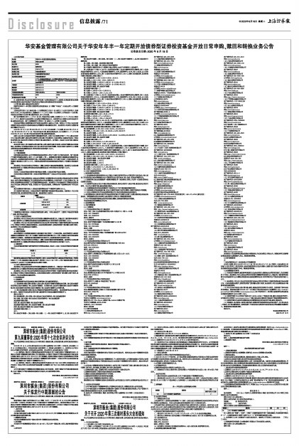 华安基金管理有限公司关于华安年年丰一年定期开放债券型证券投资基金开放日常申购、赎回和转换业务公告