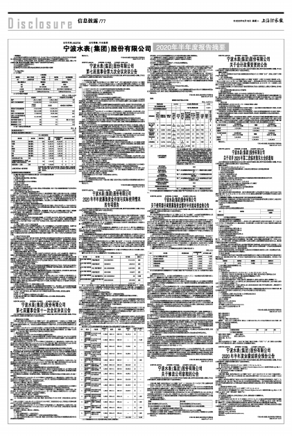 宁波水表(集团)股份有限公司(以下简称“公司”)已于2020年8月18日在《中国证券报》、《上海证券报》、《证券日报》、《证券时报》及上海证券交易所网站(www.sse.com.cn)披露了《2020年半年度报告》。