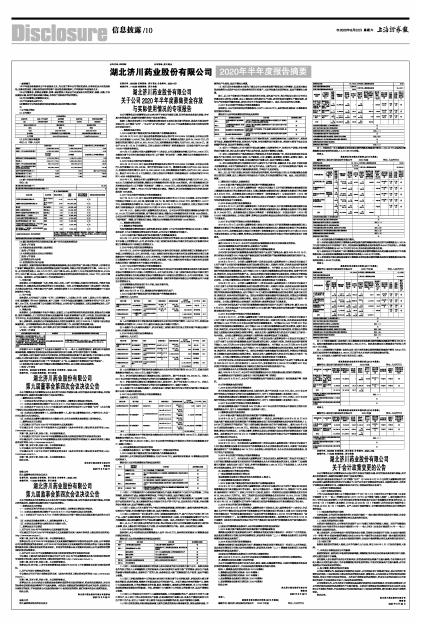 审议通过《湖北济川药业股份有限公司关于公司2020年半年度募集资金存放与实际使用情况的专项报告》的议案(具体内容详见上海证券交易所网站:http://www.sse.com.cn)。