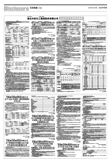 根据上海证券交易所《上市公司行业信息披露指引第十八号一一化工》、《关于做好上市公司2020年半年度报告披露工作的通知》的要求,湖北兴发化工集团股份有限公司(以下简称“公司”)现将2020年半年度主要经营数据披露如下: