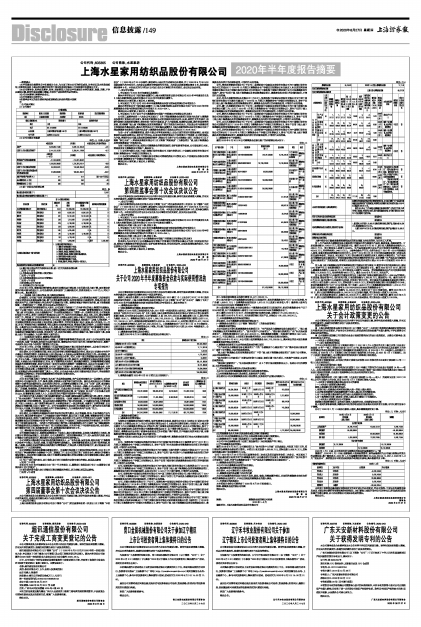 具体内容详见公司于指定媒体披露的《上海水星家用纺织品股份有限公司2020年半年度报告》及《上海水星家用纺织品股份有限公司2020年半年度报告摘要》。