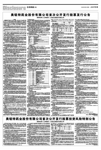 奥锐特药业股份有限公司首次公开发行股票投资风险特别公告