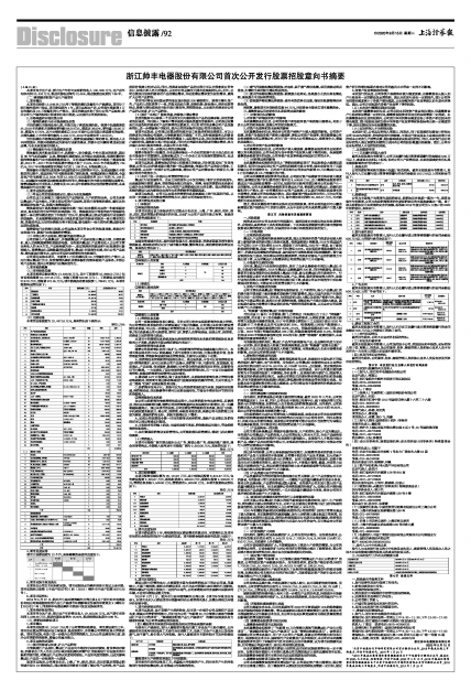浙江帅丰电器股份有限公司首次公开发行股票招股意向书摘要