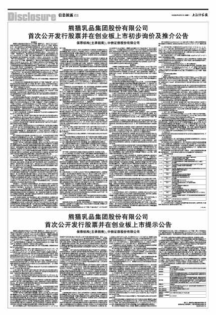 17、公告仅对本次发行中有关初步询价的事宜进行说明,投资者欲了解本次发行的一般情况,请仔细阅读2020年9月21日(T-6日)登载于深交所网站(http://www.szse.cn)及巨潮资讯网(www.cninfo.com.cn)的《熊猫乳品集团股份有限公司首次公开发行股票并在创业板上市招股意向书》(以下简称“《招股意向书》”)。