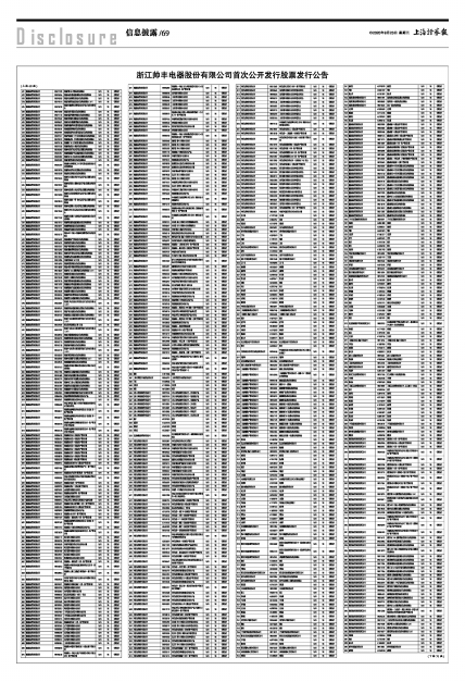 浙江帅丰电器股份有限公司首次公开发行股票发行公告
