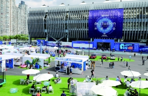 9月24日,“外滩大会”在上海市黄浦区开幕。本届大会主题为“科技让未来更普惠”,致力于推动金融科技的普惠,搭建开放的国际交流、共享平台,邀请全球金融科技领军企业和专家学者,探讨区块链、物联网、人工智能等前沿技术在金融、经济、商业、环境等领域的应用和创新。图为“外滩大会”创新展区展馆和馆前广场上的生活集市。 新华社 图